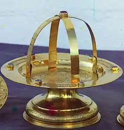Après la Communion, les voiles, l'épée, la cuiller et l'astérisque sont placés sur la patène. Le prêtre les passe au diacre qui les retourne à la table de prothèse.
