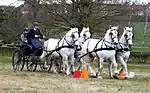 - l'épreuve de maniabilité : elle s'effectue sur des circuits jalonnées par 16 à 20 portes balisées par des balles posées sur des cônes, dont un côté est vertical et l'autre en biais. Les pistes peuvent être aménagées dans une carrière d'équitation mais la dureté du sol est indispensable. Comme en CSO, les pénalités sont infligées lors de dépassement de temps ou pour chaque balle tombée.