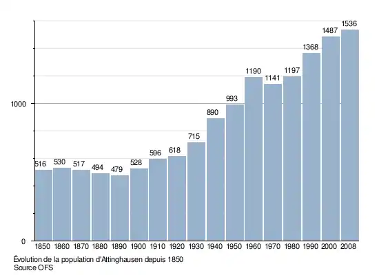 Le graphique suivant résume l'évolution de la population d'Attinghausen entre 1850 et 2008[3] :
