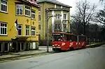 La rue August Weizenberg et le parc de Kadriorg. À gauche, le château de Kadriorg, au milieu le Palais présidentiel et à droite le musée Mikkel.  | |