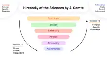 Il développe pendant toute sa vie un système philosophique, le positivisme, qui part d'une théorie de la connaissance reposant sur la loi des trois états pour proposer une classification des sciences. Cette classification consacre l'avènement de la physique sociale, appelée sociologie à partir de 1839. Cette dernière aboutit elle-même à une politique et à une morale[3]. Entre 1845 et 1849, le positivisme prend un tournant religieux, qui se concrétise dans la fondation de la religion de l'Humanité, l'Humanité[4] étant entendue par Comte comme « l’ensemble des êtres passés, futurs et présents qui concourent librement à perfectionner l'ordre universel »[5].