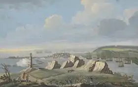 Combat entre le vaisseau français Le Mars, en route vers l'Europe après une tempête, et le HMS Nottingham, le 11 octobre 1746. Huile sur toile de Samuel Scott.
