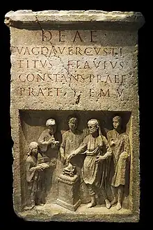 Sculpture représentant un sacrifice à la déesse Vagdavercusti sur un autel (Louvre-Lens).