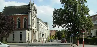 En 1912, en même temps que le complexe scolaire communal, la nouvelle école et la chapelle néo-gothique y attenante d'après les plans de l’architecte Veraart, furent consacrées par le cardinal Mercier. La direction fut confiée aux frères Maristes et l’école reçut le nom d’institut du Sacré-Cœur parce que le donateur affichait une dévotion au Sacré-Cœur de Jésus. En 1961, l’appellation changea en collège Champagnat car on voulait assimiler davantage l’école avec la congrégation des frères Maristes. En 1974, il prit finalement le nom de Lutgardis college en fusionnant avec d’autres écoles libres.