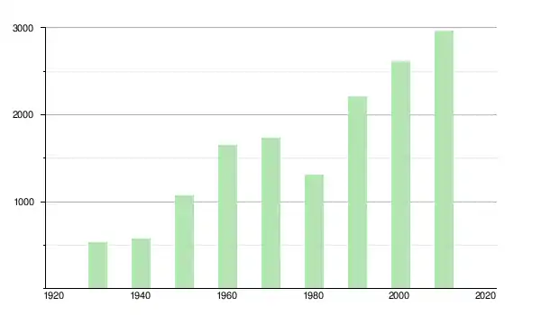| 1950 | 1 070 | ▲ +88,05 % | |