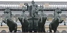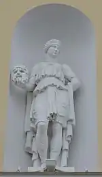 La façade est bordée par une frise garnie de sculptures, de masques de couronnes de lauriers. Dans les niches de la façade avant sont disposées des statues de muses, et devant l'attique un quadrige conduit par Apollon. Les sculptures sont dues à un sculpteur remarquable de l'époque Vassili Demuth-Malinovski.
