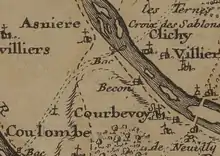 Aucune trace de la paroisse de Courbevoie et Colombes n'a pu être retrouvée avant le IXe siècle, et ces terres furent acquises au XIIe siècle par l'Abbaye de Saint-Denis[14]. Elles en furent affranchies en 1248 par Guillaume de Marcouris, abbé de Saint-Denis, Seigneur d'Asnières et premier conseiller de Saint-Louis, faisant passer l'endroit dans la paroisse de Colombes, jusqu'en 1787[15]. Après avoir évoqué Courbevoie, l'abbé Jean Lebeuf décrivant le hameau comme un petit écart de Colombes, proche Courbevoye, relève dans le registre archiépiscopal du diocèse de Paris au , qu'un sieur Pierre Sallé, conseiller au Parlement de Paris, y aurait eu sa maison de campagne[16],[17].
