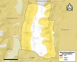 Le retrait-gonflement des sols argileux est susceptible d'engendrer des dommages importants aux bâtiments en cas d’alternance de périodes de sécheresse et de pluie[29]. 64,7 % de la superficie communale est en aléa moyen ou fort (59 % au niveau départemental et 48,5 % au niveau national)[Carte 3]. Depuis le , en application de la loi ELAN, différentes contraintes s'imposent aux vendeurs, maîtres d'ouvrages ou constructeurs de biens situés dans une zone classée en aléa moyen ou fort[Note 5],[30].