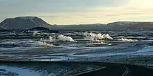 Vue aérienne de la Búrfell (à gauche) depuis le nord-ouest. | ||