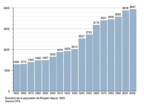 Le graphique suivant résume l'évolution de la population de Bürglen entre 1850 et 2008[11] :
