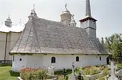 - Bălan, ancienne église orthodoxe en bois du monastère de Bălan, dédiée à la Dormition de la Vierge et datant du XIXe siècle[7].