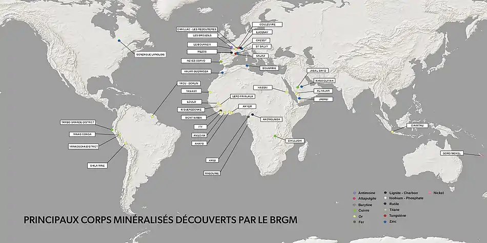 - du Bureau de recherches géologiques, géophysiques et minières (BRGGM), lui-même héritier du Bureau de recherches géologiques et géophysiques (BRGG) fondé en 1941 par Edmond Friedel et Pierre Pruvost, alors destiné à cartographier le sous-sol de la France ;