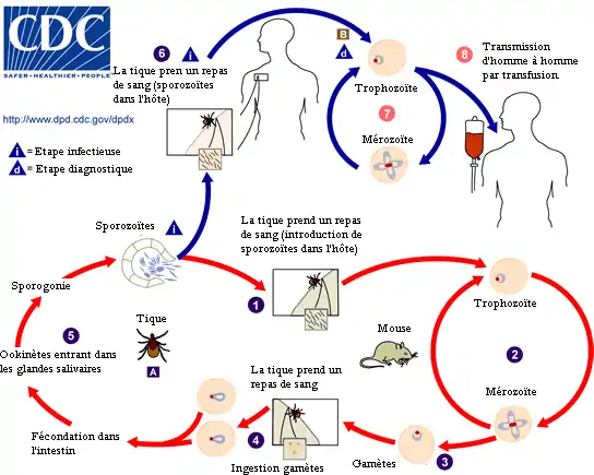 • (en) Babesiosis source d'où provient la première version de cet article.