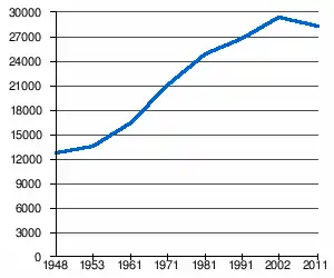 En 2002, l'âge moyen de la population de la ville était de 37,6 ans pour les hommes et 40,3 ans pour les femmes[3].