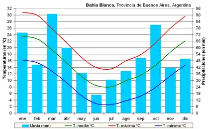 Bahía Blanca (en français : « baie blanche »[1]) est une ville de la province de Buenos Aires, en Argentine. Elle est située près de l'océan Atlantique, à environ 650 km au sud-ouest de Buenos Aires, la capitale fédérale.