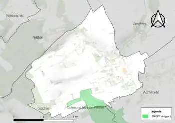Le territoire communal comprend une ZNIEFF de type 1[Note 1] : le coteau et le bois de Pernes, d’une superficie de 171 ha et d'une altitude variant de 103 à 177 mètres. Ce site est un ancien lieu d’activité agropastorale du Béthunois lors du siècle précédent[13].
