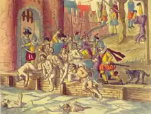 - (nl) Cet article est partiellement ou en totalité issu de l’article de Wikipédia en néerlandais intitulé « Bloedbad_van_Zutphen » (voir la liste des auteurs).