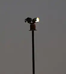 - Une fois blanc, une fois vert (ou uniquement vert) : aérodromes disposant d'un système d'éclairage et situés sur terre.