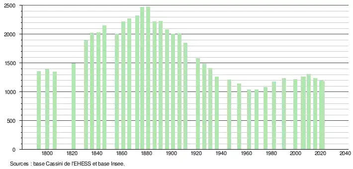 En 1867, le hameau comptait 451 habitants, répartis en 70 maisons[12] : soit 19,8 % de la population de la commune à l'époque.