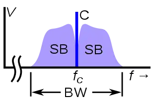 La modulation d'amplitude d'un signal porteur produit normalement deux bandes latérales en miroir. Les composantes du signal situées au-dessus de la fréquence de la porteuse constituent la bande latérale supérieure (USB) et celles situées au-dessous de la fréquence de la porteuse constituent la bande latérale inférieure (LSB). Par exemple, si une porteuse de 900 kHz est modulée en amplitude par un signal audio de 1 kHz, il y aura des composantes à 899 kHz et 901 kHz ainsi qu'à 900 kHz dans le spectre radiofréquence généré ; Ainsi, une largeur de bande audio de (disons) 7 kHz nécessitera une largeur de bande du spectre radioélectrique de 14 kHz. Dans la transmission AM conventionnelle, telle qu'elle est utilisée par les stations AM de la bande de radiodiffusion, le signal audio d'origine peut être récupéré ("détecté") par des circuits de détection synchrones ou par de simples détecteurs d'enveloppe, car la porteuse et les deux bandes latérales sont présentes. On parle parfois de modulation d'amplitude à double bande latérale (DSB-AM), mais toutes les variantes de DSB ne sont pas compatibles avec les détecteurs d'enveloppe.