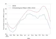 - Tous les jours le graphique d'extension en km² de la banquise est mise à jour sur le site The National Snow and Ice Data Center