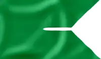 Une bannière verte[40] à deux pointes divisées et d'une demi ligne centrale horizontale de trois centimètres était utilisée pour représenter la dynastie des Al-Akhdari et leur État au VIIIe siècle, le vert signifie l'Islam et leur ascendance pure arabe ; cette dernière évoluera par la suite au fur et à mesure des successions dynastiques dans la région, reprise et utilisée par les Fatimides[41] au IXe siècle qui devient un drapeau vert foncé de forme rectangulaire lors du Califat fatimide sous le règne d'Ubayd Allah al-Mahdi puis par Muhammad ibn Saoud Al-Muqrin[42] (tribu des Banu Hanifa) en 1744 ayant imprégné la profession de foi en son centre intérieur.