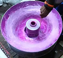 Les machines modernes fonctionnent presque de la même façon que l'originale. La partie au centre de la machine est une sorte de cône qui tourne sur lui-même et dans lequel le sucre est versé avec du colorant alimentaire. Un chauffage électrique ou au gaz à la périphérie du cône fait fondre le sucre. Grâce à la force centrifuge, le sucre s'échappe par de nombreux trous minuscules et se solidifie au contact de l'air en formant des filaments et est attrapé dans un grand chaudron de métal. L'opérateur tourne alors un bâtonnet ou un cône dans ce chaudron pour prendre la confiserie qui s’enroule autour[5].