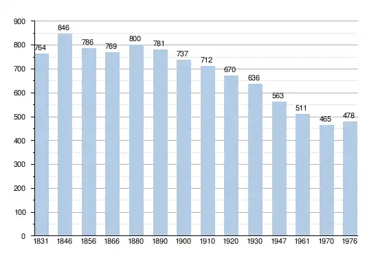 - Sources : INS, Rem. : 1831 jusqu'en 1970 = recensements, 1976 = nombre d'habitants au 31 décembre.