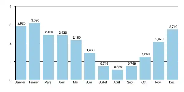 Le module de la rivière au Breuil est de 1,88 m3/s[2].