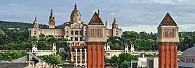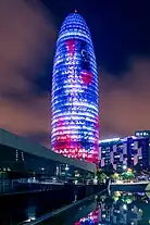 ![]() ![]() ![]() ![]() ![]() De haut en bas et de gauche à droite : le Palau Nacional, l'Arc de Triomf, la Sagrada Familia, la Tour Glòries et le Camp Nou. |