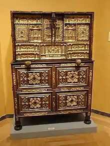- Bargueño de type crédence avec des tiroirs visibles sur la partie haute, et des portes sur la partie basse.