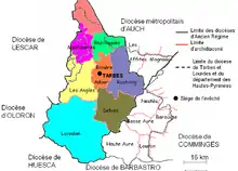 Les Angles était sous l'Ancien Régime le siège de l'un des huit archidiaconés de Bigorre. L'archidiacre résidait à Tarbes, comme l'évêque de Bigorre, et c'était donc "un grand dignitaire du clergé bigourdan" selon Bourdette qui livre aussi son organisation paroissiale. L'archidiaconé des Angles comprenait quatre archiprêtrés : Les Angles, Adé, Ibos et Pontacq. Pontacq, aujourd'hui en Béarn, était jusqu'en 1256 du Comté de Bigorre et par conséquent du diocèse de Tarbes ou de Bigorre. En passant dans le Béarn à la suite d'une guerre malheureuse pour la Bigorre, Pontacq changea de seigneur temporel mais continua de faire partie du Diocèse de Bigorre.