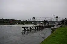 Une passerelle de service franchissant le barrage est construite, ainsi qu'un système de câbles empêchant les péniches de se diriger vers le barrage.