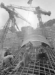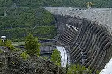 Le complexe se compose d'un barrage poids-voûte haut de 245 m, long de 1 066 m et large de 110 m à la base et de 25 m au sommet[1]. Le barrage comprend quatre segments : un segment de 246,1 m sur la rive gauche, la centrale (331,8 m), le déversoir (189,6 m) et un segment sur la rive droite de 298,5 m[2]. L'eau exerce une pression de 30 millions de tonnes sur le barrage qui en absorbe 60 % par son poids ; le 40 % restant étant diffusé au roc des deux rives du fleuve[3].