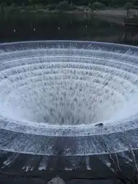 - Loisirs - de l'eau peut être libérée d'un réservoir pour créer ou compléter des conditions d'eau vive pour le kayak et d'autres sports d'eau vive[32]. Sur les rivières à salmonidés, des lâchers spéciaux (appelés freshets en Grande-Bretagne, courant d'eau douce(?)) sont faits pour encourager les comportements de migration naturelle chez les poissons et pour fournir une variété de conditions de pêche aux pêcheurs.