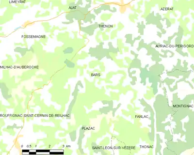 Bars est limitrophe de six autres communes. À l'est, le territoire de Montignac-Lascaux n'est éloigné que de 25 mètres.