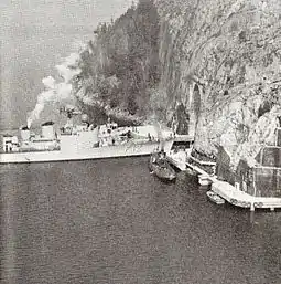 Dès 1955, le dragueur de mines HMS M14 peut prendre place dans l'un des tunnels[1]. En 1967, le HMS Halland (sv) est le premier destroyer à accoster dans la base souterraine, et au cours des deux années suivantes la gouvernance du site passe progressivement de l'administration nationale des fortifications (en), responsable de la construction, vers la marine nationale[2]. Petit à petit, les activités se développent, et le le transfert de la base navale de Stockholm à Muskö est officiellement terminé[3].