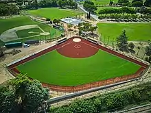 Composé d' un terrain sénior naturel éclairé, d'un terrain 12U/softball féminin en synthétique et de 2 terrains de Baseball5