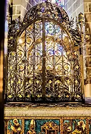 L’ensemble repose sur trois marches de marbre. Il est constitué d’une cuve en marbre sur lequel reposent à ses extrémités deux anges en marbre de Carrare, œuvre de Dominique Fossati, de Marseille, en 1771[5]. Au centre, le tabernacle doré est surmonté d’un baldaquin et d’une coupole.