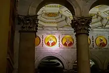 Léon le Grand entreprend de représenter tous les papes de l’histoire dans une série de médaillons peints dans la nef centrale. Après l'incendie de 1823, le pape Pie IX reprend le même principe en 1847 avec des médaillons en mosaïque sur fond d'or.