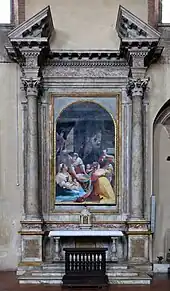 La prédelle (17), qui porte quinze petits panneaux avec les Mystères du Rosaire, a été récemment attribuée au Sodoma (première moitié du XVIe siècle).