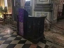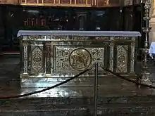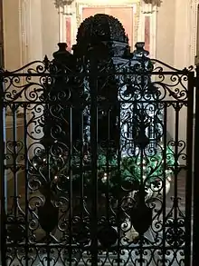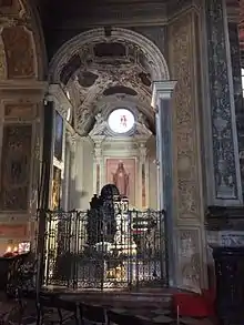 Les colonnes de séparation mentionnées servaient à permettre l'accès à la basilique, dont l'entrée fut déplacée en 1610 à l'ouest, vers le cimetière[10]. Ce cimetière fut utilisé jusqu'en 1808, lorsqu'une disposition du gouvernement napoléonien obligea les administrations municipales à déplacer les cimetières hors des centres habités[9],[10],[11].