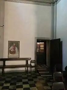 De 1516 à 1523, il y eut une suspension des travaux qui fut causée par un potentiel manque de fonds, ou bien par l'incapacité de Bramante à communiquer les méthodes de décoration des intérieurs : le grand artiste d'Urbino meurt en effet à Rome en 1514[15]. En ce qui concerne l'hypothèse liée au manque d'argent, la plupart des familles nobles qui séjournaient, même périodiquement, à Legnano, étaient en grande difficulté économique en raison de l'invasion de l'armée française, qui chassa les Sforza du duché de Milan en 1499[15].