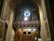 Jusqu'en 1610, l'entrée de la basilique était située vers l'actuel palais Malinverni, vers le nord, et a ensuite été déplacée vers sa position actuelle. À l'origine, l'entrée principale était située à la place de la chapelle de l'Immaculée Conception (également appelée "de l'Assomption ") : lorsque l'entrée a été déplacée, la porte d'entrée a été murée et cet atrium a été transformé en chapelle[22]. La deuxième ancienne porte d'entrée, qui était située vers le sud, en direction du presbytère, dans l'actuelle chapelle du Saint-Crucifix, a également été murée[23]. Deux nouvelles entrées ont donc été ouvertes, à savoir les actuelles portes latérales de la façade principale tournée vers la Piazza San Magno[24].