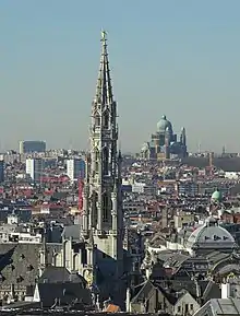 La Tour de l'Hôtel de ville et le plateau de Koekelberg dominant Bruxelles.