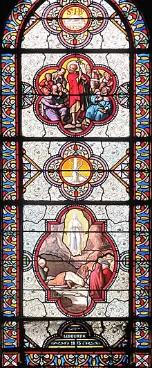 - Guérison de Mademoiselle Lambert (sœur du concepteur des vitraux).