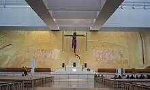 - un crucifix en bronze[N 8], mesurant 7,5 m, suspendu au-dessus de l'autel principal.