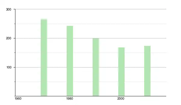 | 1980 | 243 | ▼ −8,3 % | |