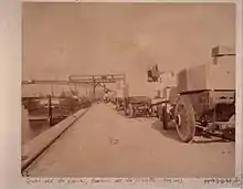On voit sur cette carte postale du début du XXe siècle l'extrémité du bassin de la Villette qui se transforme en canal Saint-Martin. Sur l'embouchure du canal se trouve un kiosque de la Compagnie générale des omnibus, qui était une des compagnies de tramways et de bus de Paris. Au-dessus se trouve le viaduc de la ligne 2 du métro de Paris alors exploitée par la CMP.