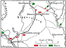 Quand les Boers envahirent le Natal, une force commandée par le général Kock (comprenant essentiellement des hommes du Kommando Johannesburg, ainsi qu'un détachement de volontaires allemands)[1] occupa la gare ferroviaire d'Elandslaagte le , interrompant ainsi les communications avec les forces britanniques stationnées à Ladysmith et celles de Dundee. Apprenant la coupure du télégraphe, le général George White envoya sa cavalerie sous le commandement du général-major John French pour reprendre la gare.